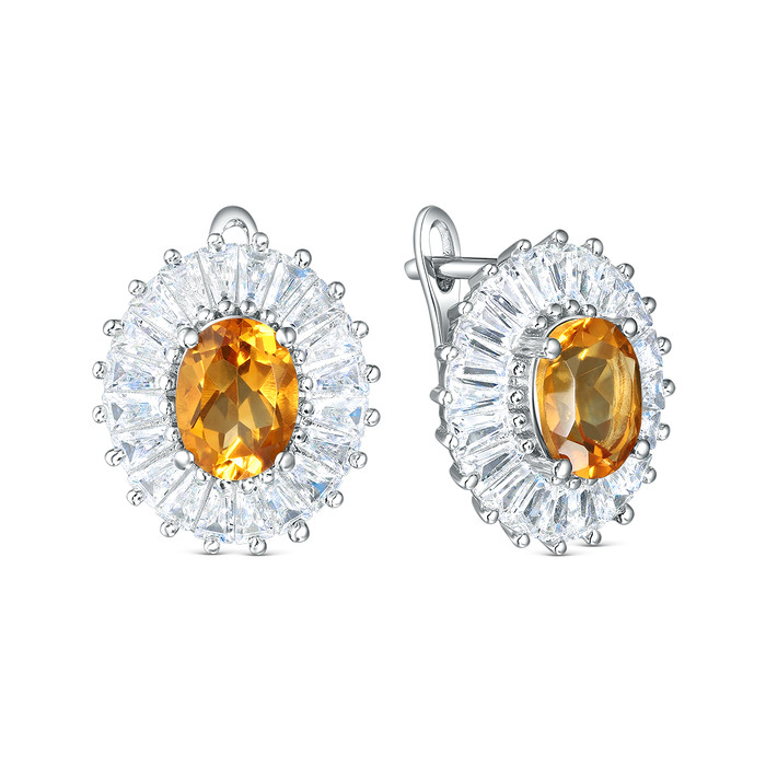 Совместные покупки Уфа Ювелирные украшения и бижутерия Серьги — Серьги из серебра с цитрином и кубическим цирконием родированные 925 пробы GTP-1