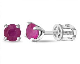 Серьги-пусеты из серебра с синт. рубином и фианитами родированные