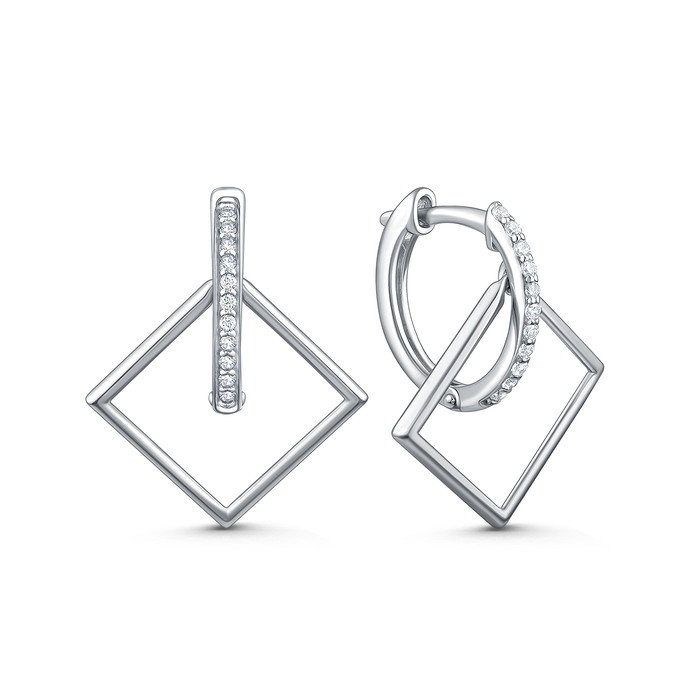 Совместные покупки Уфа Ювелирные украшения и бижутерия Серьги — Серьги из серебра с фианитами родированные - Ромбы 925 пробы 11-1339р