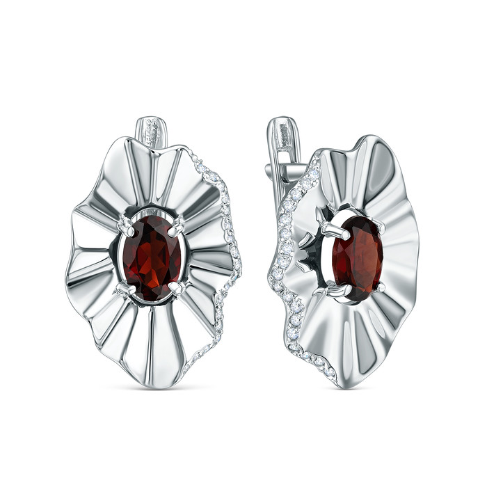 Серьги из серебра с гранатом и фианитами родированные 2-3871-001р404