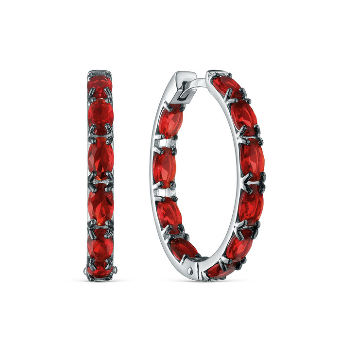 Совместные покупки Уфа Ювелирные украшения и бижутерия Серьги — Серьги из серебра с искусственным кварцем рубиновый и чёрным родием родированные