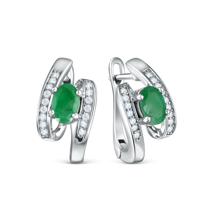 Совместные покупки Уфа Ювелирные украшения и бижутерия Серьги — Серьги из серебра с изумрудом и кубическим цирконием 925 пробы GTE-12566F-E