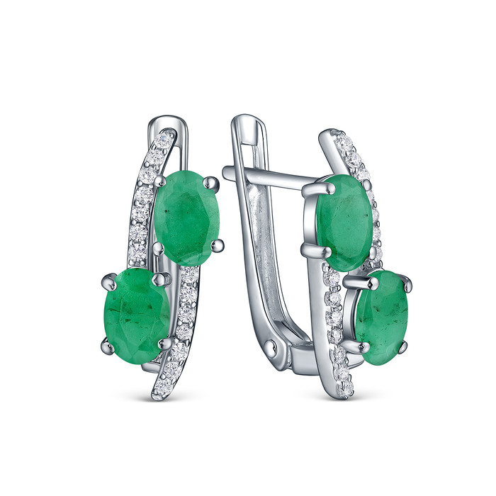 Совместные покупки Уфа Ювелирные украшения и бижутерия Серьги — Серьги из серебра с изумрудом и кубическим цирконием родированные 925 пробы GTE-