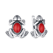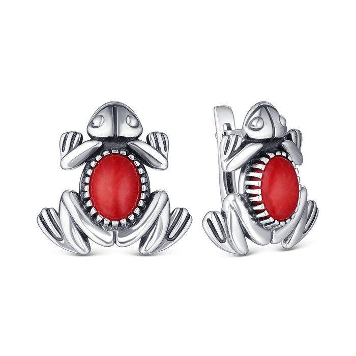 Совместные покупки Уфа Ювелирные украшения и бижутерия Серьги — Серьги из серебра с кораллом родированное - лягушки 925 пробы С-4071ок454