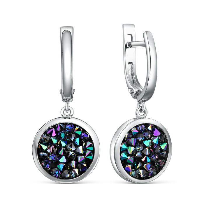 Серьги из серебра с кристаллом Премиум Австрия Радуга родированные 925 пробы С-0
