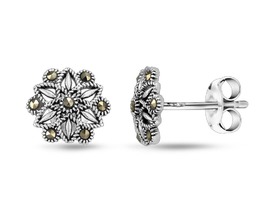Серьги из чернёного серебра с натуральным агатом и марказитами 925 пробы HE1105-