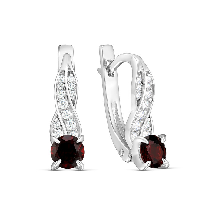 Совместные покупки Уфа Ювелирные украшения и бижутерия Серьги — Серьги из серебра с натуральным гранатом и фианитами родированные 925 пробы 2-36