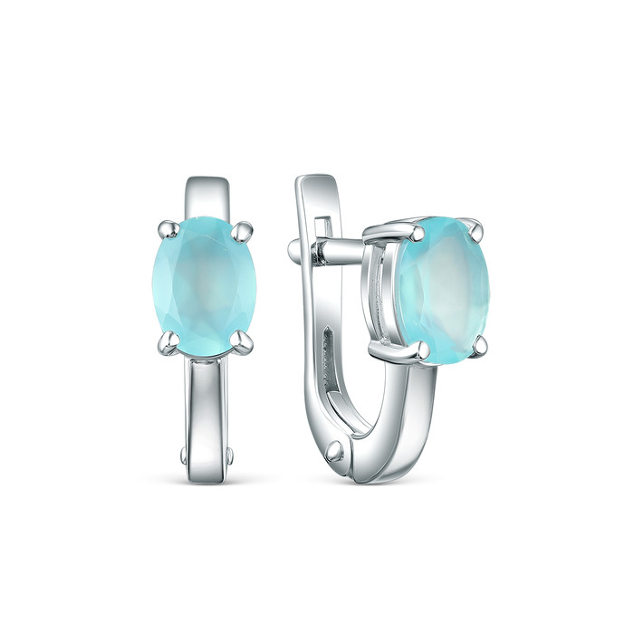 Серьги из серебра с натуральным халцедоном родированные 925 пробы С-0103-52-09