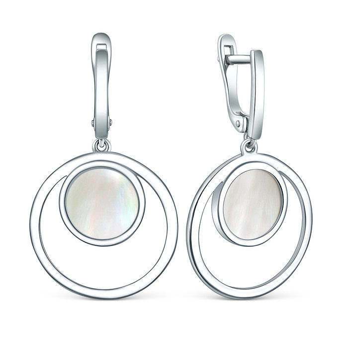 Серьги из серебра с натуральным перламутром родированные - Круги 925 пробы С-453