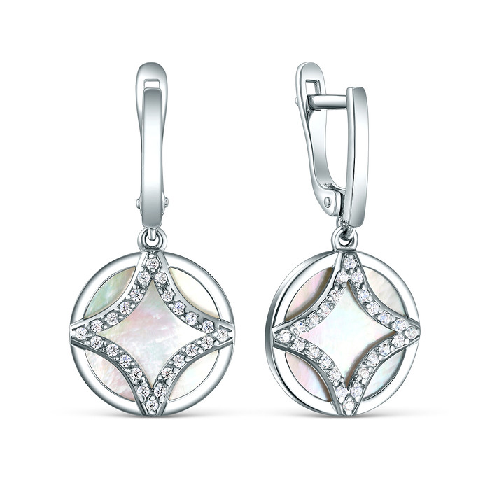 Совместные покупки Уфа Ювелирные украшения и бижутерия Серьги — Серьги из серебра с перламутром и фианитами родированные 925 пробы С-4528-Р