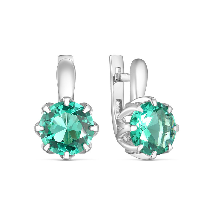 Серьги из серебра с плавленым кварцем цвета параиба родированные 925 пробы 00169