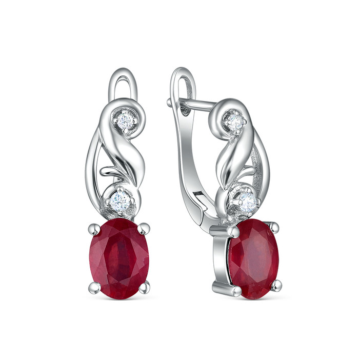 Серьги из серебра с рубином и кубическим цирконием родированные 925 пробы GTE-00