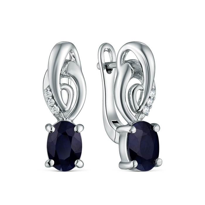 Серьги из серебра с сапфиром и кубическим цирконием родированные 925 пробы GTE-0
