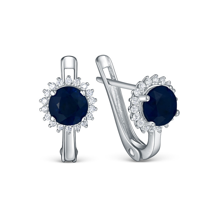 Совместные покупки Уфа Ювелирные украшения и бижутерия Серьги — Серьги из серебра с сапфиром и кубическим цирконием родированные 925 пробы GTE-3
