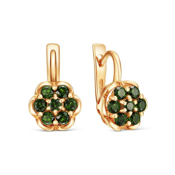 Совместные покупки Уфа Ювелирные украшения и бижутерия Серьги — Серьги из золочёного серебра с хромдиопсидом 925 пробы С-4000зс487
