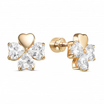 Серьги из золочёного серебра с нат. рубинами, синт. рубинами и фианитами