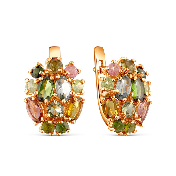 Совместные покупки Уфа Ювелирные украшения и бижутерия Серьги — Серьги из золочёного серебра с турмалином мульти 925 пробы 2-472з428