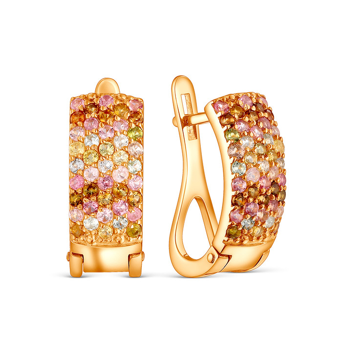 Совместные покупки Уфа Ювелирные украшения и бижутерия Серьги — Серьги из золочёного серебра с турмалином мульти 925 пробы 2-473з428