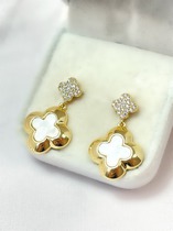 Серьга-пусет из серебра с синтетическим опалом и фианитами родированная - Моносе