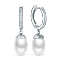 Серьги из серебра с культивированным жемчугом и фианитами родированные С50222