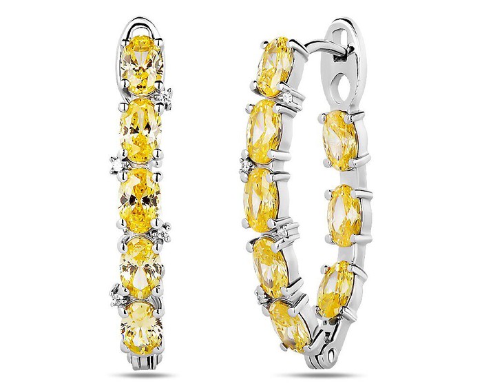 Серьги из серебра с изумрудом и кубическим цирконием родированные 925 пробы GTE-