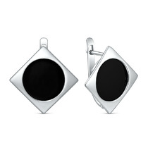 Серьги из серебра с чёрным агатом родированные 925 пробы С-4039-Р-Ча