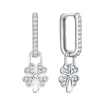 Серьги из серебра с фианитами родированные - Клевер, четырёхлистник, Трансформер