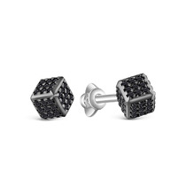 Серьги-пусеты Кубики из серебра с натуральной чёрной шпинелью родированные 925 п