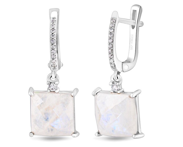 Серьги, арт.656241 Серебро Серебро 925, 4,75 гр., лунный камень