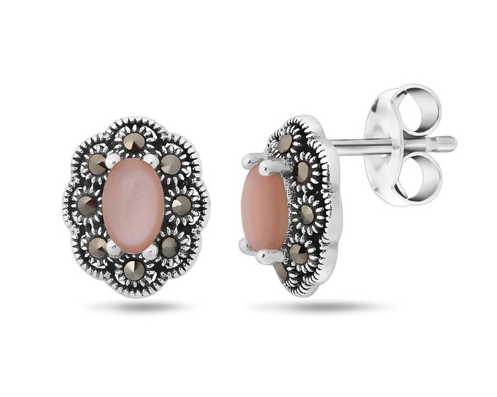 Серьги, арт.656510 Серебро Серебро 925, 2,04 гр., марказит , перламутр розовый