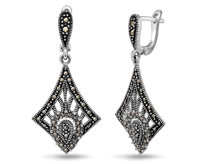 Серьги, арт.656486 Серебро Серебро 925, 8,36 гр., марказит