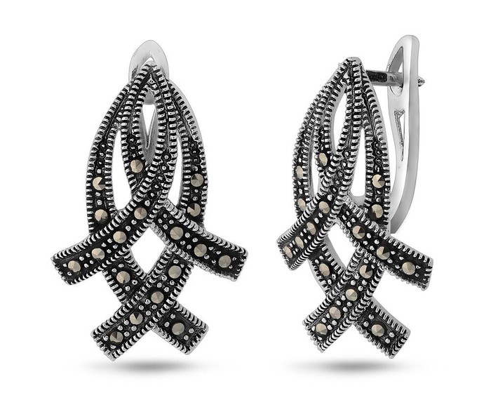 Серьги, арт.656454 Серебро Серебро 925, 7,69 гр., марказит