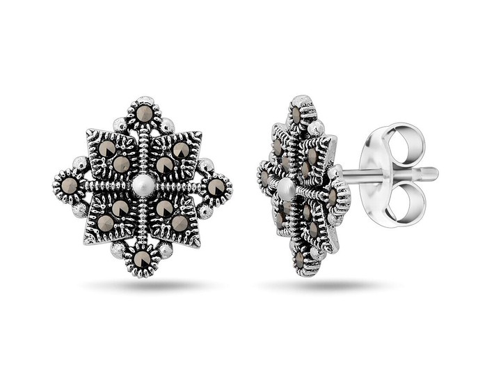 Серьги, арт.656519 Серебро Серебро 925, 2,08 гр., марказит