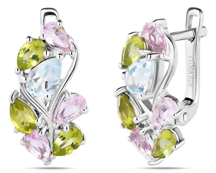 Серьги, арт.658603 Серебро Серебро 925, 4,62 гр., морганит , перидот , топаз