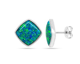 Серьги из серебра опал сине-зеленый, МОВ0296