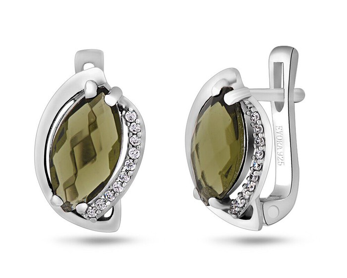 Серьги, арт.656207 Серебро Серебро 925, 3,3 гр., оливковая шпинель