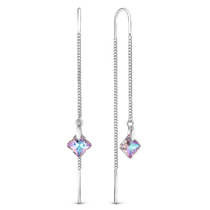 Серьги-продёвки из серебра с кристаллами Премиум Австрия Мистик розовый родирова