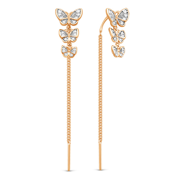 Совместные покупки Уфа Ювелирные украшения и бижутерия Серьги — Серьги-продёвки длинные из золочёного серебра с фианитами и родированием - Бабоч