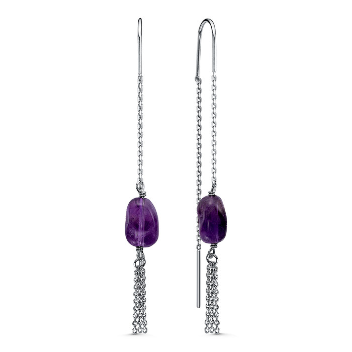 Серьги-продёвки из родированного серебра с аметистом 925 пробы 15591AMRH