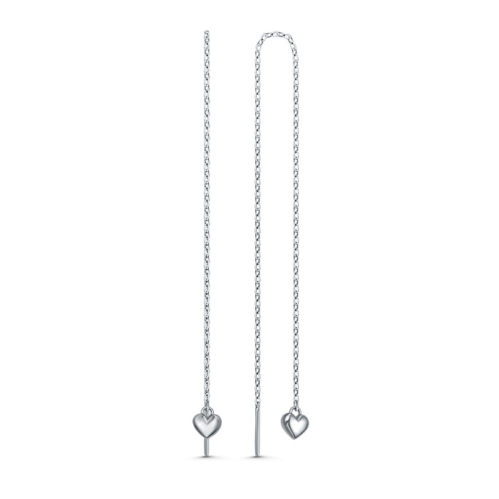 Совместные покупки Уфа Ювелирные украшения и бижутерия Серьги — Серьги-продёвки из серебра родированные - Сердца (длина всего изделия 18 см) 925