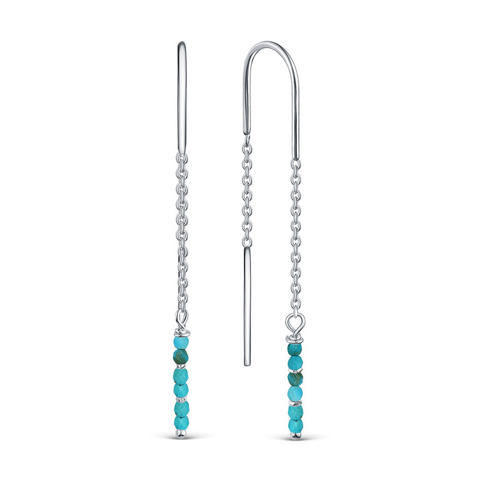 Серьги-продёвки из серебра с бирюзовым хаулитом родированные 925 пробы 15864HTRH