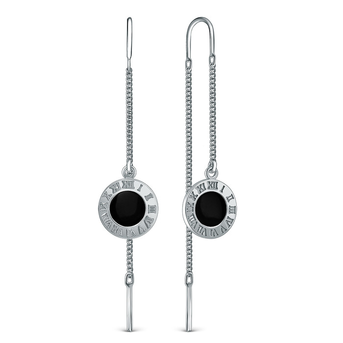Серьги-продёвки из серебра с чёрной эмалью родированные ПС-078рэ