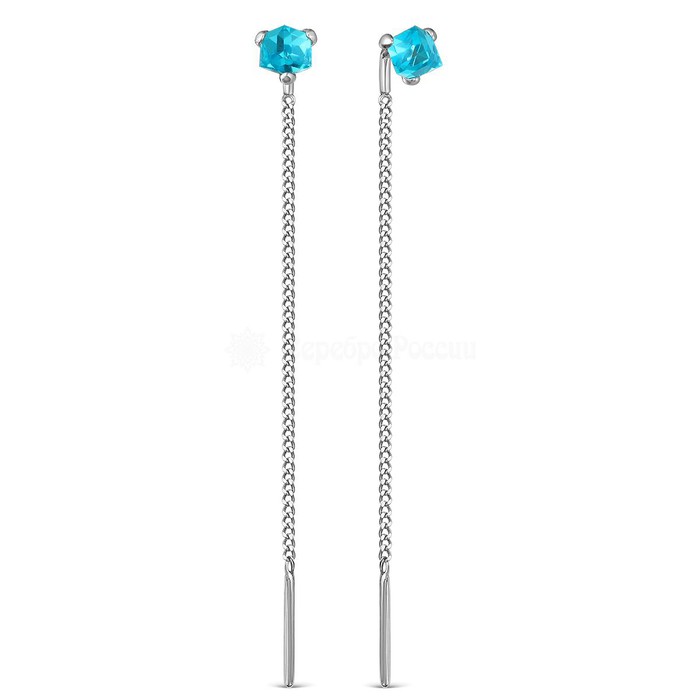 Серьги-продёвки из серебра с кристаллами премиум Австрия цв.светло-бирюзовый род