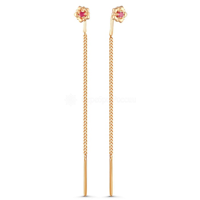 Серьги-продёвки из золочёного серебра с нат.рубином