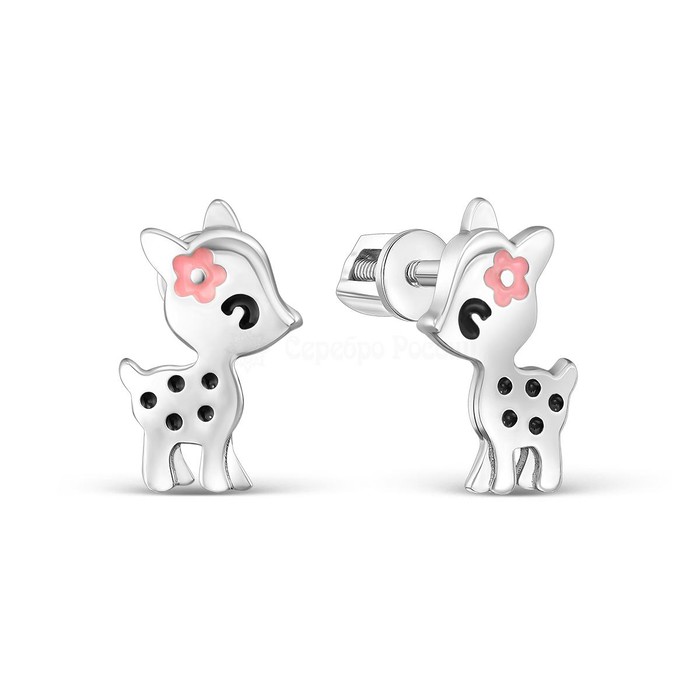 Совместные покупки Уфа Детские аксессуары Украшения, бижутерия — Серьги-пусеты детские из серебра с эмалью родированные - Оленёнок 925 пробы пс-0