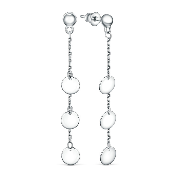 Серьги-пусеты длинные из родированного серебра - Круги 220-10-189р