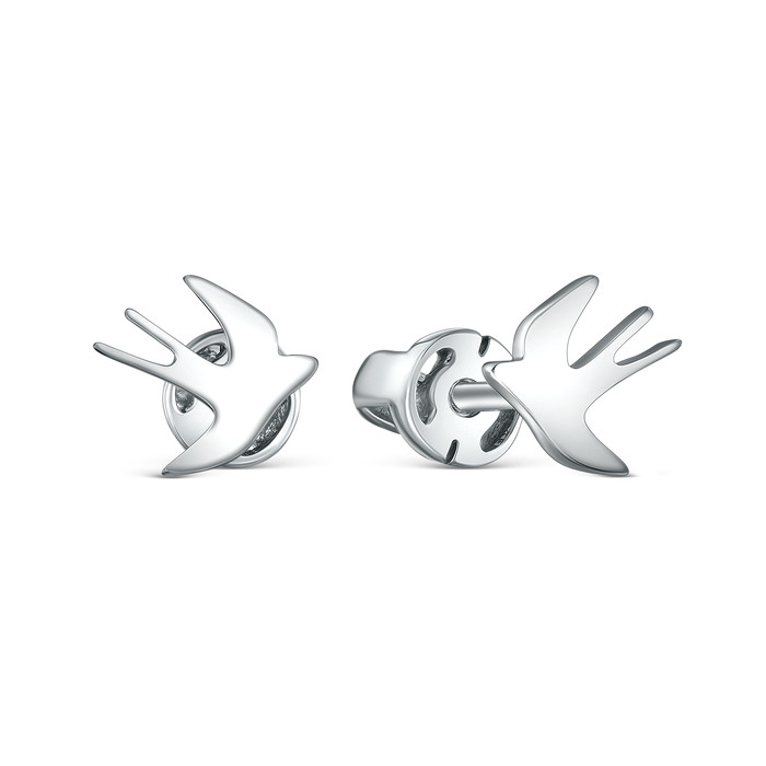 Совместные покупки Уфа Ювелирные украшения и бижутерия Серьги — Серьги-пусеты из серебра родированные - Ласточки 925 пробы М2-022р