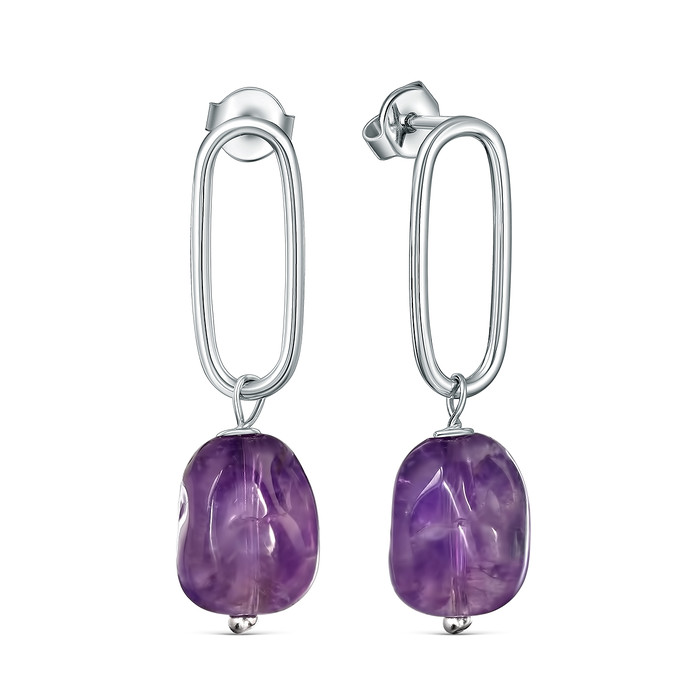 Совместные покупки Уфа Ювелирные украшения и бижутерия Серьги — Серьги-пусеты из серебра с аметистом родированные 925 пробы 18991AMRH