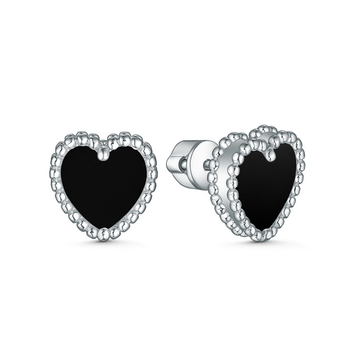 Совместные покупки Уфа Ювелирные украшения и бижутерия Серьги — Серьги-пусеты из серебра с чёрным ониксом родированные - Сердца 2-032р442