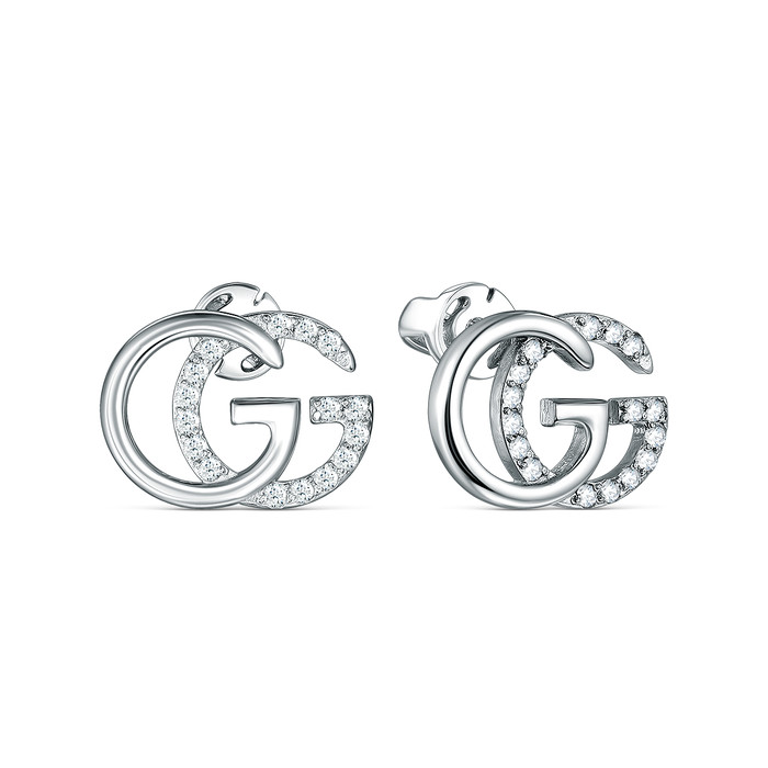 Серьги-пусеты из серебра с фианитами родированные - GG 925 пробы 4-579р200